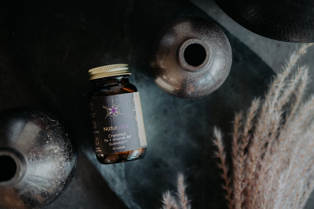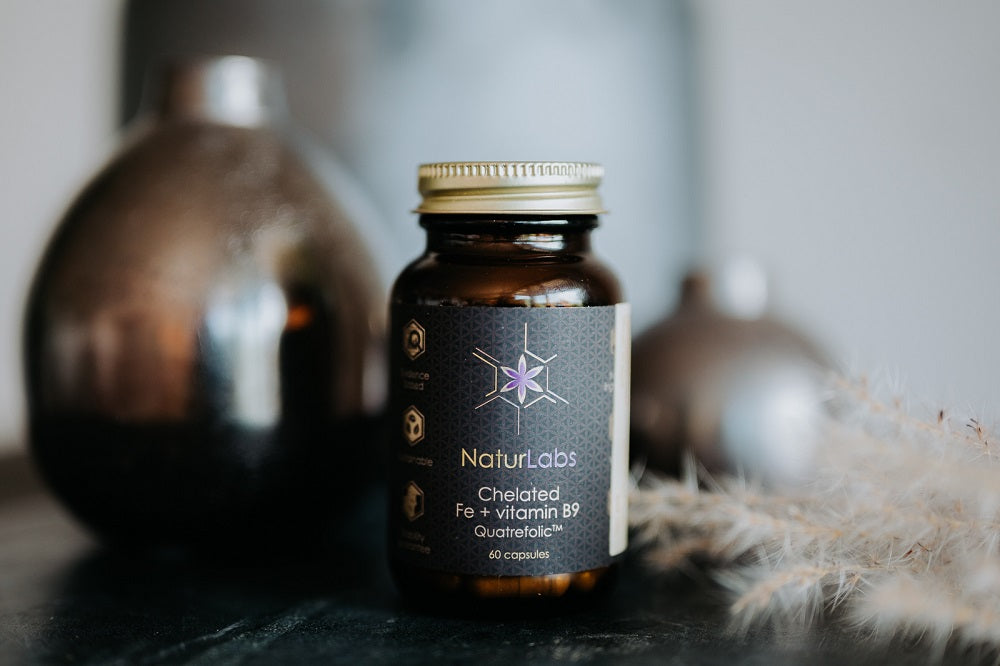 Chelátová forma železa spolu s kyselinou listovou nabízí vynikající biologickou dostupnost a je šetrná k tělu, obvykle nezpůsobuje zácpu, a neobsahuje zbytečné přídatné látky či chemické aditiva.