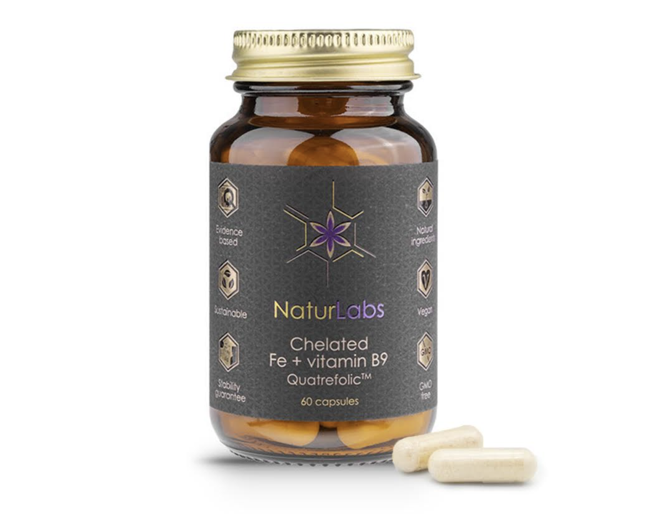Speciální forma doplňku: Tento doplněk využívá železo v organické chelátové formě pro lepší vstřebatelnost a toleranci, a kyselinu listovou ve formě aktivního folátu Quatrefolic® pro maximální biologickou dostupnost bez nutnosti enzymatické přeměny.